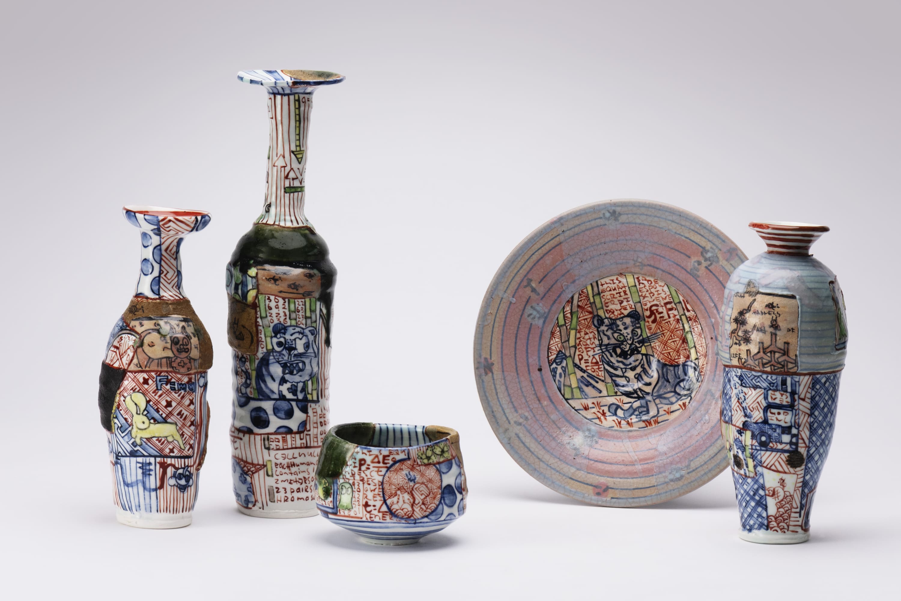 At the heart of this exhibition is Scythe's contemporary reimagining of the Yobitisugi (borrowed-patches) technique. A delicate process of patching together mismatched porcelain and stoneware shards, Scythe creates dynamic, tessellated surfaces that challenge traditional notions of cohesion and uniformity. This meticulous deconstruction and reconstruction not only alludes to the Japanese art of kintsugi, celebrating repair and the beauty of age, but also acts as a deliberate act of artistic disruption, resulting in surfaces that are both visually arresting and tactilely engaging.